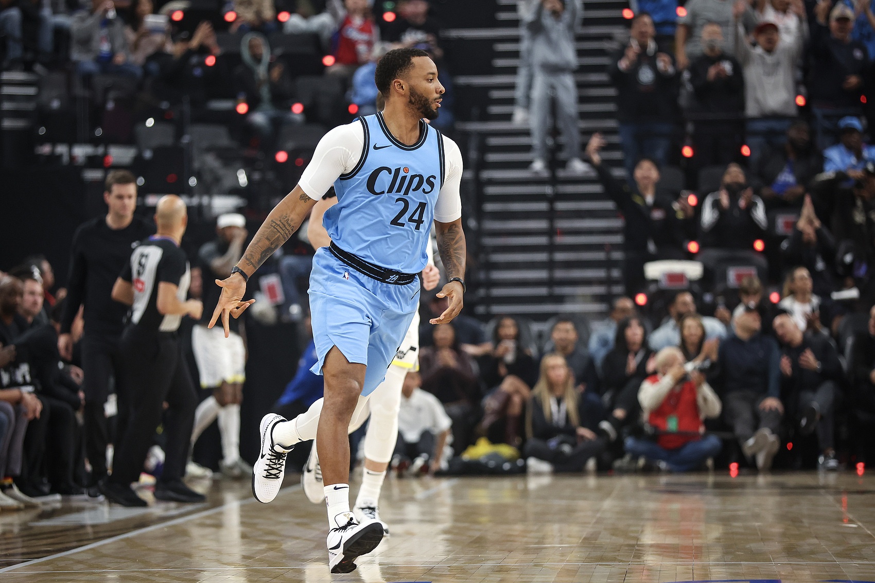 上半場,快船開場表現(xiàn)慢熱,一度落后13分之多,此后諾曼-鮑威爾和祖巴茨聯(lián)手拿分帶隊完成反超。
