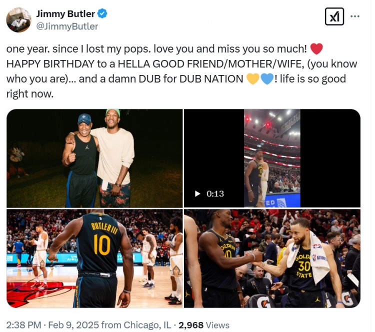 賽后,巴特勒更推道:“我失去我的父親已經(jīng)一周年了。我愛你,也很想念你。??祝一個好朋友/母親/妻子生日快樂(將父親指代為這些角色)。(你知道你是誰)...今天對于勇士王國來說也是非常棒的一天。????????現(xiàn)在的生活是如此美好?!?/p>