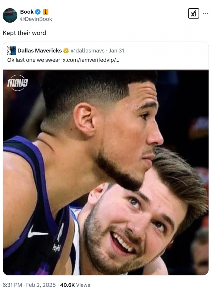獨行俠官方昨天說最后一次用東契奇凝望照!布克回懟:挺遵守諾言