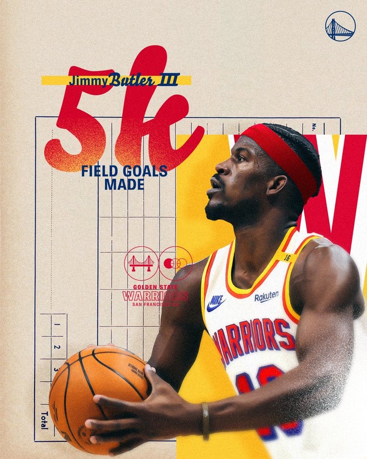 這球過后,巴特勒生涯運(yùn)動(dòng)戰(zhàn)進(jìn)球數(shù)來到5000個(gè),勇士官方也送上祝福。