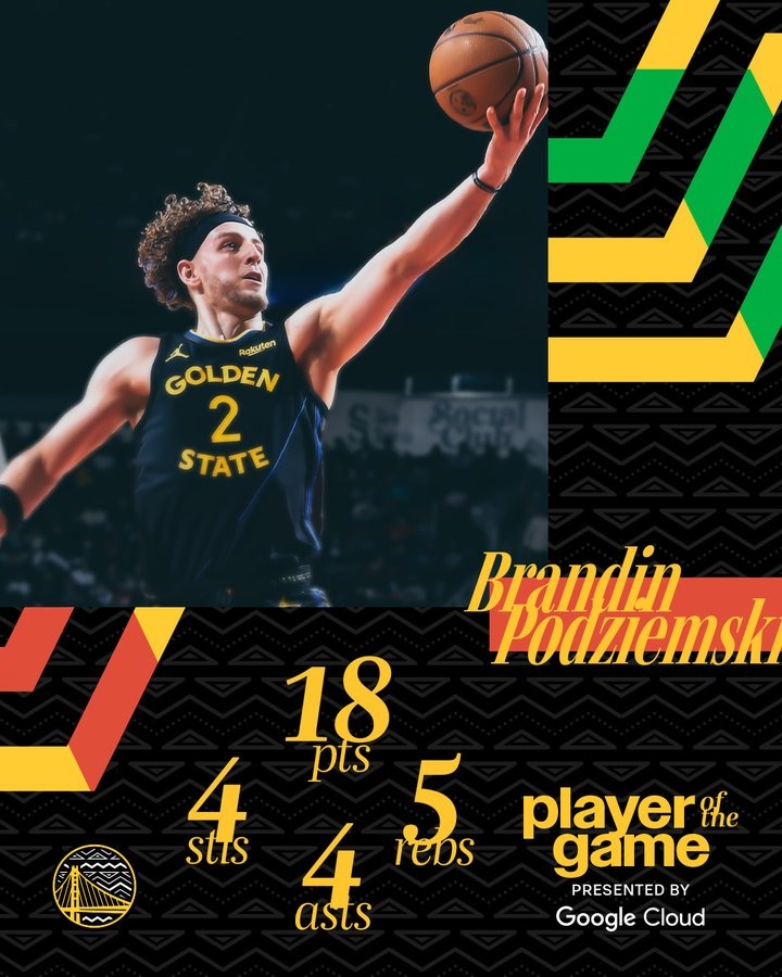 賽后,勇士官方將本場最佳球員給到了布蘭丁-波杰姆斯基,并配文道:“在攻防兩端都充滿斗志和拼勁”。