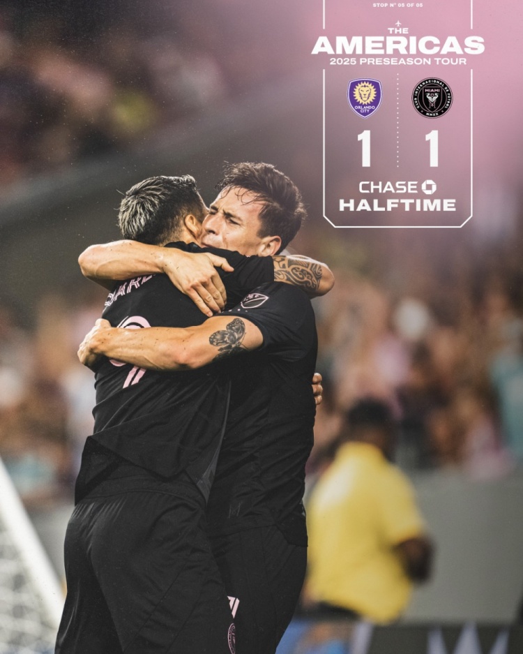 傷停補時1分鐘。上半場比賽結束,邁阿密國際1-1奧蘭多城。