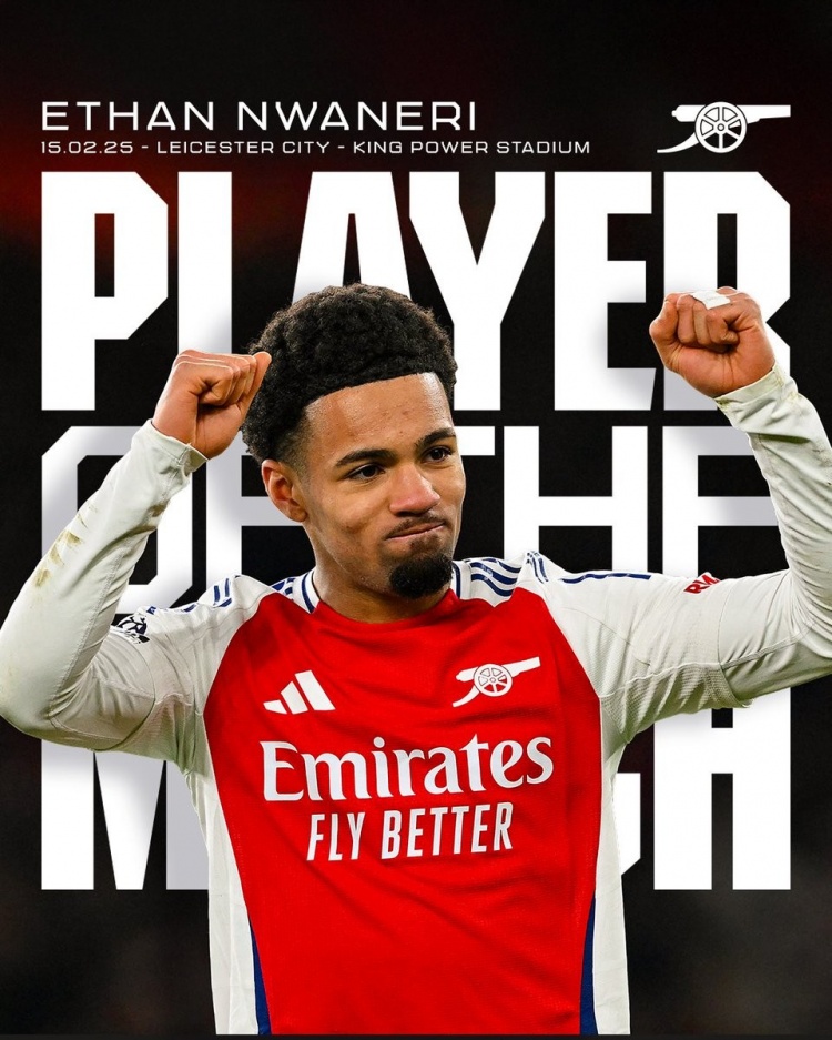 阿森納官推在賽后宣布,經(jīng)過球迷投票,恩瓦內(nèi)里當(dāng)選本場比賽隊(duì)內(nèi)最佳球員。