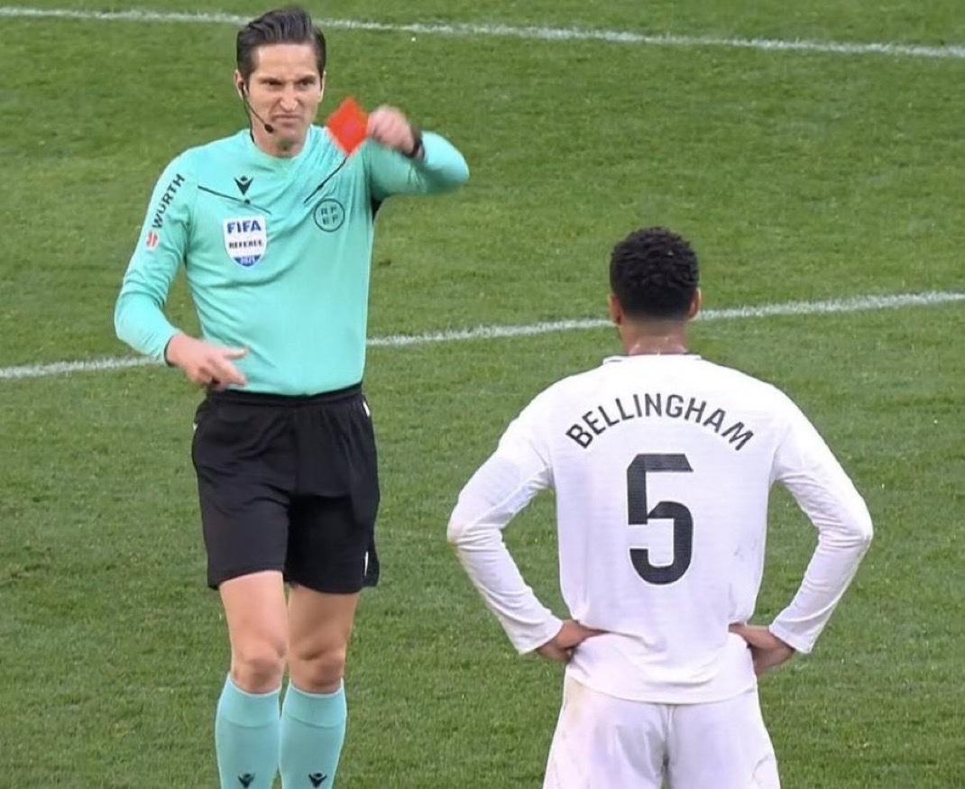 02月16日訊 西甲第24輪,皇馬客場1-1戰(zhàn)平奧薩蘇納,貝林厄姆因?qū)χ鞑帽秩炯t。裁判報告稱貝林厄姆說的是“fxxk you”,安切洛蒂則表示貝林說的是“fxxk off”。