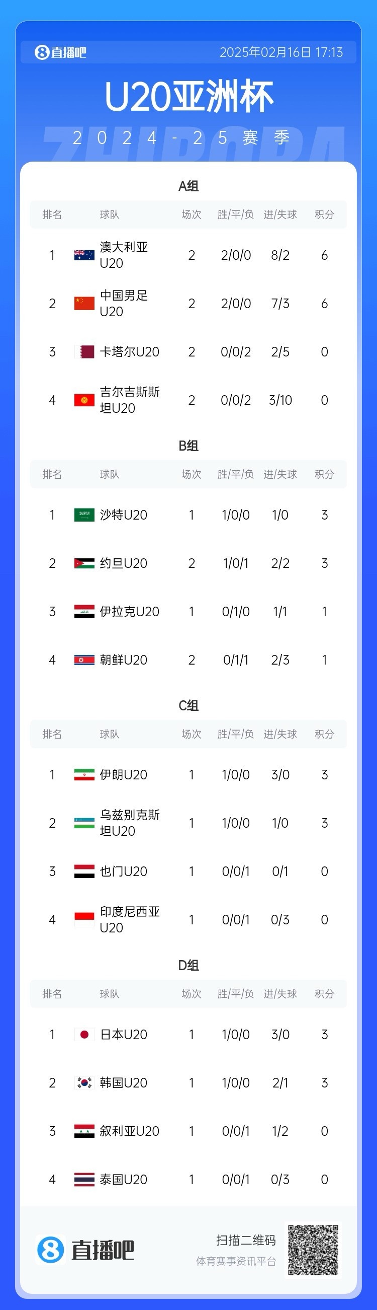 2月16日訊 北京時間今天下午進行的U20亞洲杯B組第二輪比賽,朝鮮1-2不敵約旦,兩輪過后僅積1分。