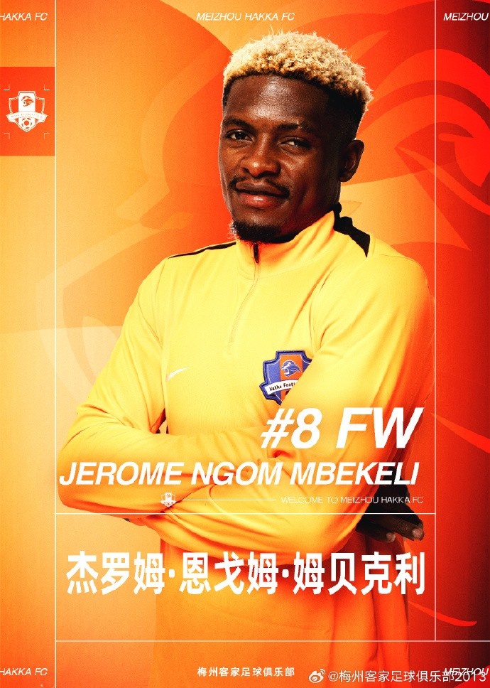 經(jīng)與球員本人友好協(xié)商一致,杰羅姆-恩戈姆-姆貝克利加盟梅州客家足球俱樂部,新賽季將身披8號球衣代表梅州客家足球俱樂部征戰(zhàn)中超聯(lián)賽及各項賽事。
