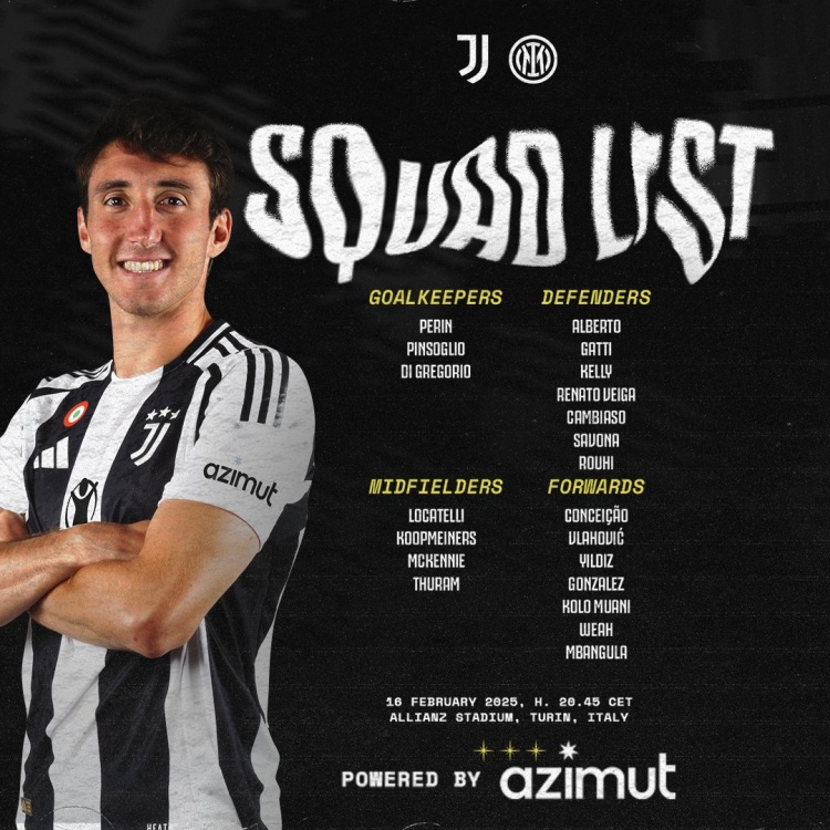 2月16日訊 北京時(shí)間明天凌晨3點(diǎn)45分,尤文將在意甲第25輪比賽中主場對陣國米。尤文公布了此役的球員名單,坎比亞索復(fù)出,道格拉斯-路易斯、卡巴爾、米利克、布雷默、卡盧盧缺席。
