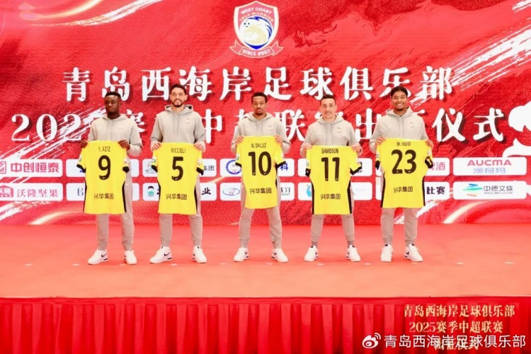 2月16日訊 據(jù)青島西海岸俱樂部官博報道,今天下午,青島西海岸足球俱樂部舉行了2025賽季中超聯(lián)賽出征儀式,包括里切利、阿齊茲、戴維森在內(nèi)的新賽季球隊5名外援集體登場亮相。