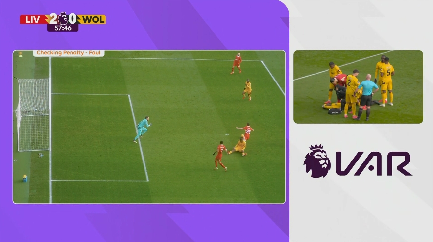 02月16日訊 英超第25輪,利物浦vs狼隊(duì)。比賽第58分鐘,阿格巴杜放鏟若塔禁區(qū)內(nèi)倒地,主裁西蒙-胡珀第一時(shí)間判點(diǎn),但隨后VAR介入,西蒙-胡珀在觀看回放后取消點(diǎn)球判罰。