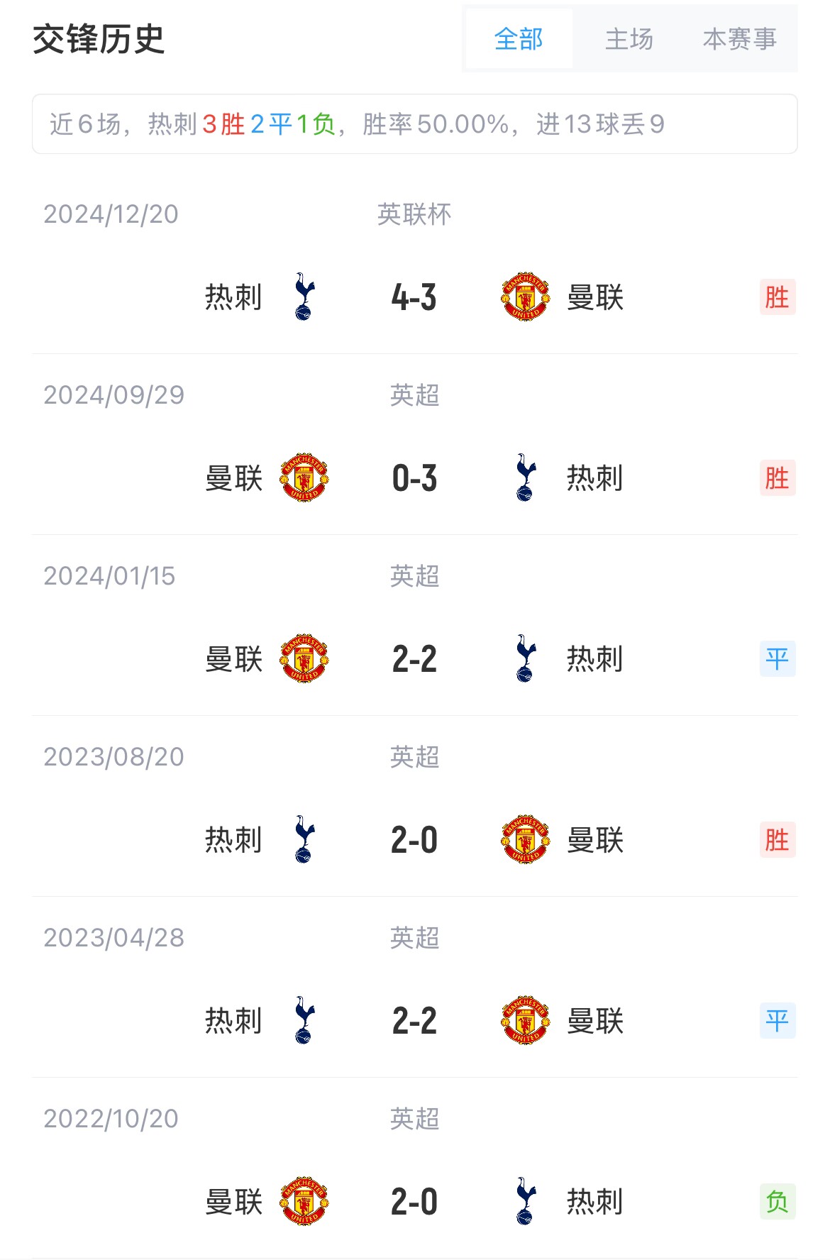 曼聯(lián)目前以29分排在第14名,熱刺27分排在第15。曼聯(lián)對(duì)熱刺已五場(chǎng)不勝,本賽季的兩次交手分別聯(lián)賽主場(chǎng)0-3慘敗、聯(lián)賽杯客場(chǎng)3-4不敵熱刺。
