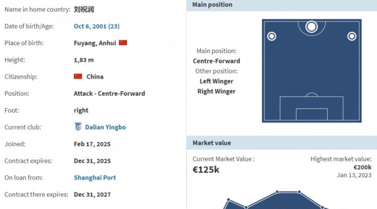 目前,劉祝潤(rùn)的身價(jià)為12.5萬(wàn)歐元。