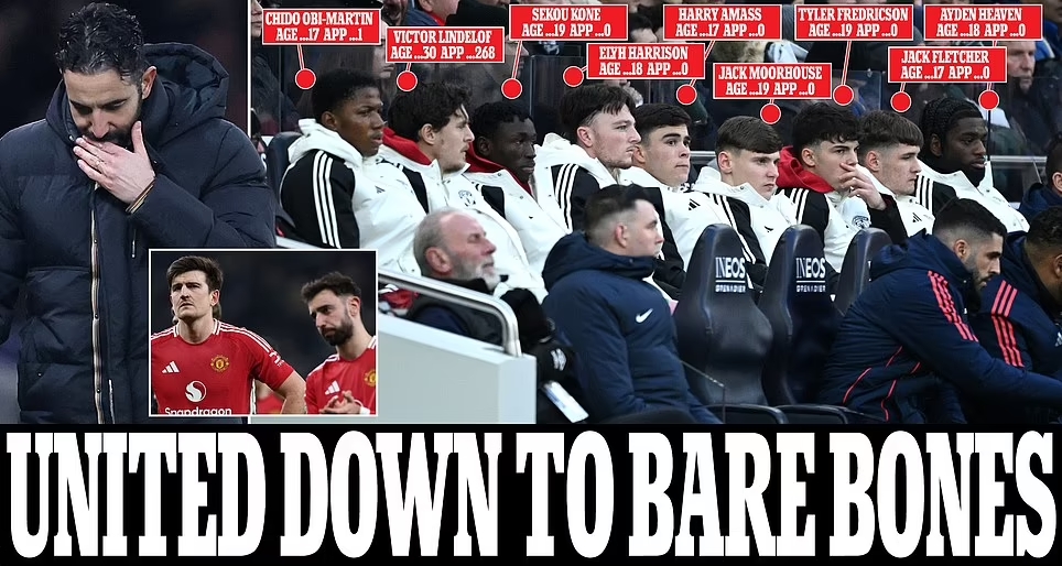 2月17日訊 客場(chǎng)0-1負(fù)于熱刺的比賽中,曼聯(lián)所帶的替補(bǔ)席只有林德洛夫有一線隊(duì)出場(chǎng)經(jīng)歷,其余球員平均年齡只有19歲。