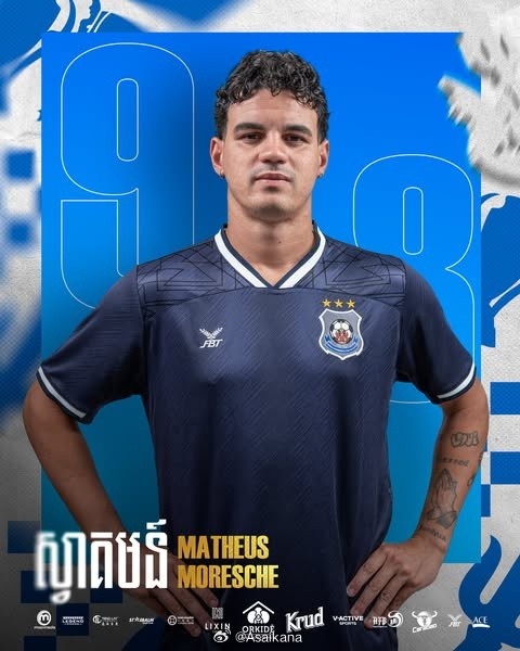 柬埔寨柴楨俱樂部(Preah Khan Reach Svay Rieng)官方宣布,此前效力于南京城市隊的巴西前鋒馬特烏斯·莫雷斯切(Matheus Moresche)加盟球隊。馬特烏斯去年2月加盟南京城市,效力一個賽季以來,為南京城市出場32次,打進5球。