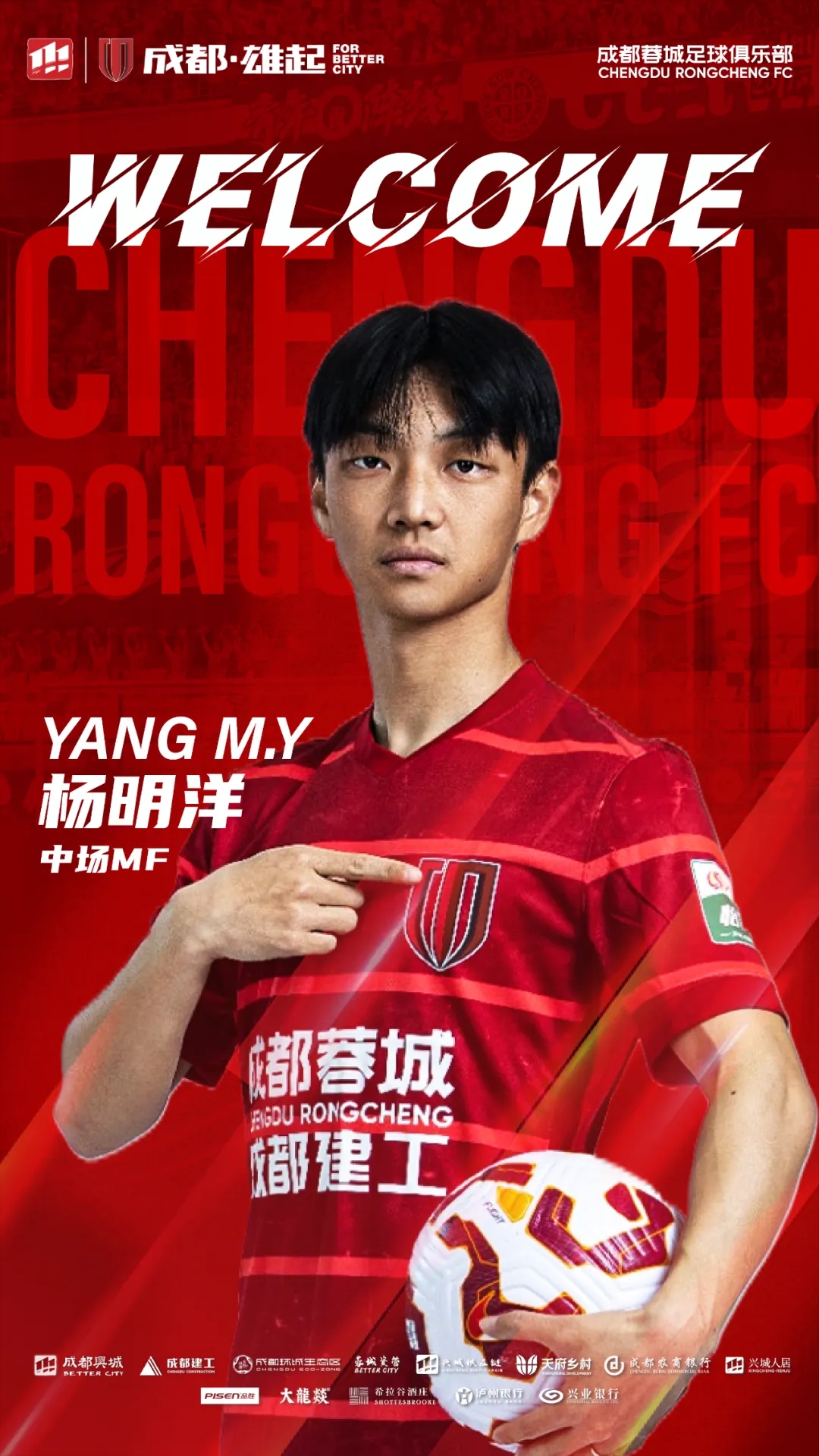 歡迎楊明洋來到成都,加入成都蓉城的大家庭。你的到來,將幫助蓉城在新賽季中取得更優(yōu)異的成績!