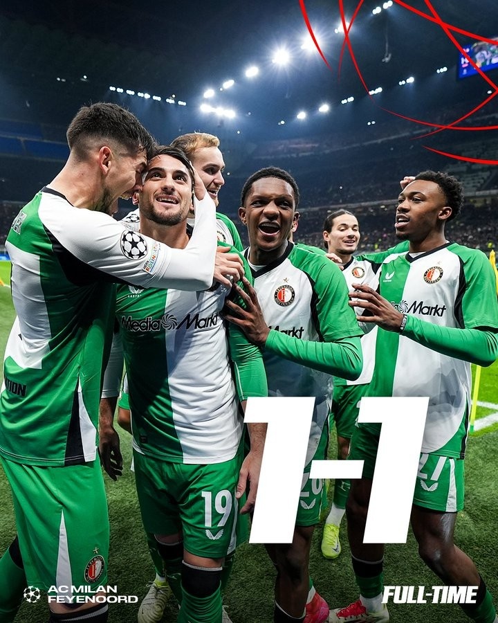 2月19日訊 費(fèi)耶諾德在本輪歐冠客場(chǎng)1-1逼平米蘭,總比分2-1晉級(jí)歐冠十六強(qiáng)戰(zhàn)。