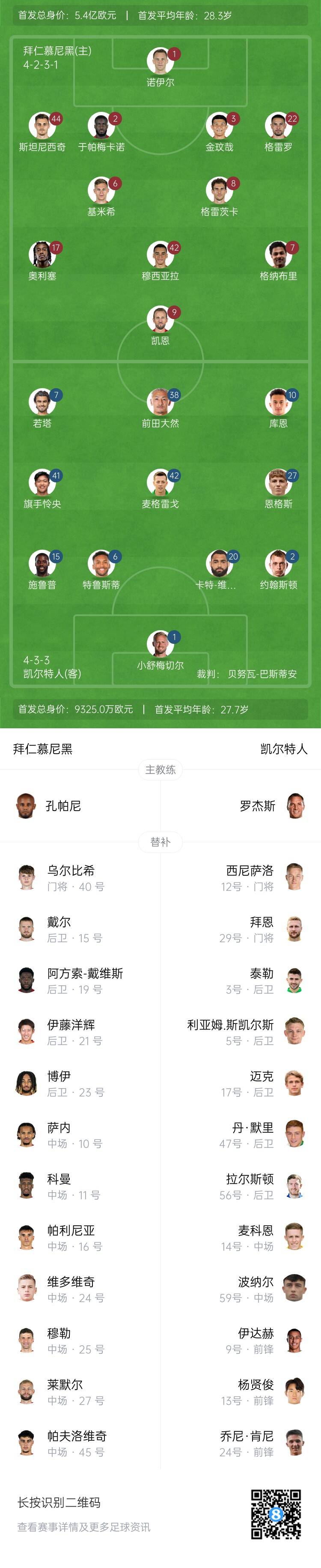 拜仁替補:40-烏爾比希、10-薩內(nèi)、11-科曼、15-戴爾、16-帕利尼亞、19-阿方索-戴維斯、21-伊藤洋輝、23-博伊、24-維多維奇、25-托馬斯-穆勒、27-萊默爾、45-帕夫洛維奇