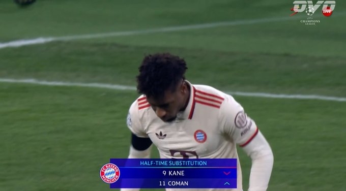 2月19日訊 歐冠淘汰賽附加賽次回合,拜仁vs凱爾特人。下半場(chǎng)剛開始,凱恩被科曼換下。