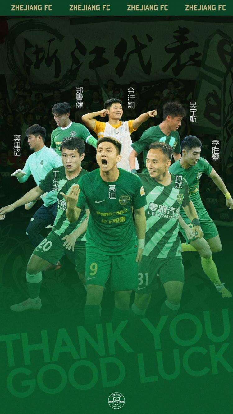 基于俱樂(lè)部整體發(fā)展規(guī)劃和球員個(gè)人發(fā)展需要,在合同期滿(mǎn)后,浙江職業(yè)足球俱樂(lè)部與上賽季一線(xiàn)隊(duì)球員高迪、顧斌、王東升、樊津銘、金浩翔、季勝攀、吳宇航、鄭雪健不再續(xù)約。