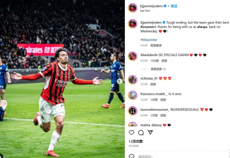 賴因德斯也在賽后曬出自己進(jìn)球后的慶祝照,并配文:“很難接受的結(jié)局,但全隊(duì)已經(jīng)竭盡全力。米蘭球迷們:感謝你們一如既往的支持,周三再見!”