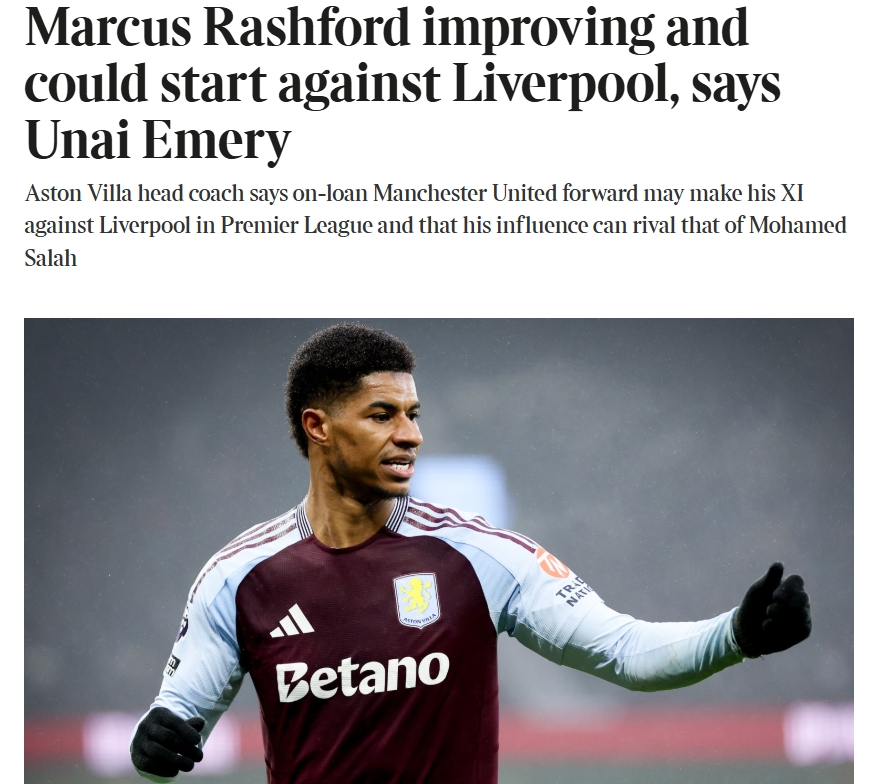 02月19日訊 明天凌晨3:30,維拉將在主場(chǎng)迎戰(zhàn)利物浦,賽前維拉主帥埃梅里透露,曼聯(lián)租將拉什福德本場(chǎng)有望首發(fā)。