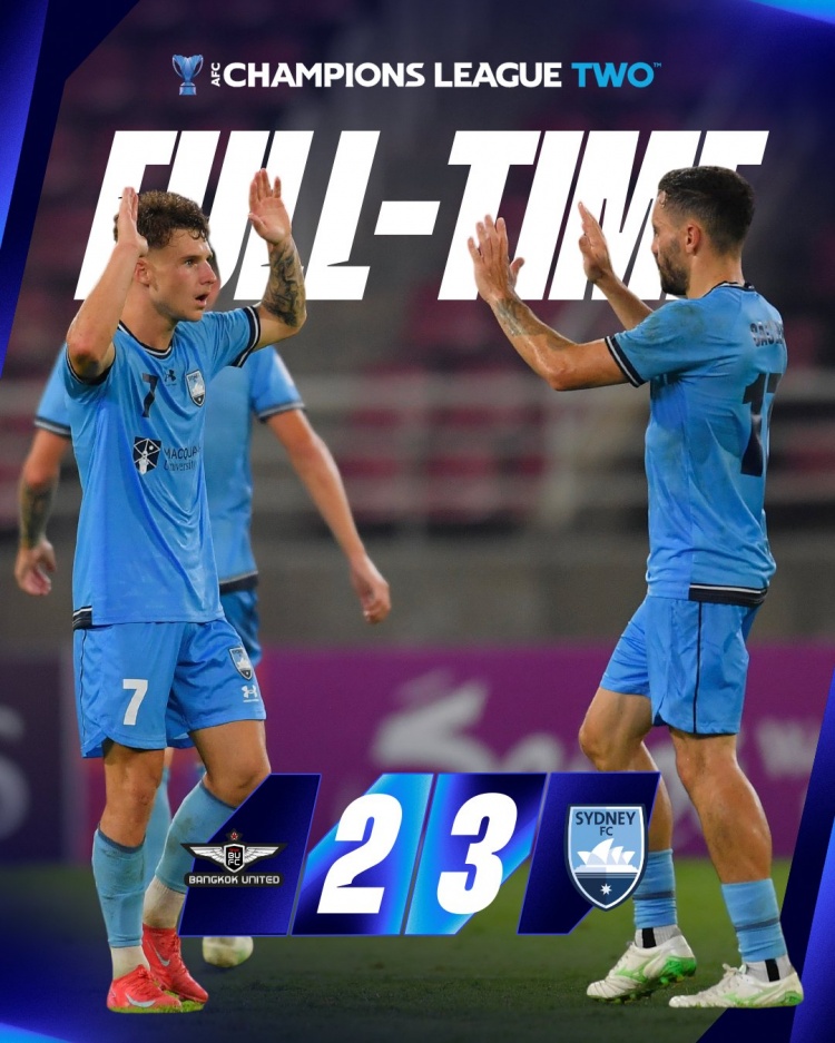 常規(guī)時間雙方戰(zhàn)成2-2。進入加時賽后,第100分鐘,巴西球星道格拉斯-科斯塔攻入制勝進球,最終悉尼FC以3-2的比分艱難戰(zhàn)勝曼谷聯,兩回合總比分5-4晉級。