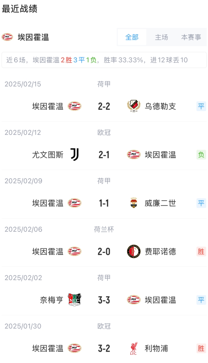 2月20日訊 歐冠淘汰賽附加賽次回合,埃因霍溫主場迎戰(zhàn)尤文比賽即將打響,賽前首發(fā)出爐。首回合對陣,尤文2-1埃因霍溫。