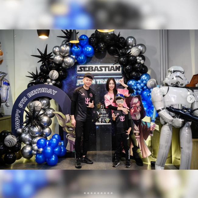 陶喆妻子江佩蓉在社交媒體上曬出全家的合照,慶祝兒子6歲生日,一家人都身穿邁阿密國際球衣。