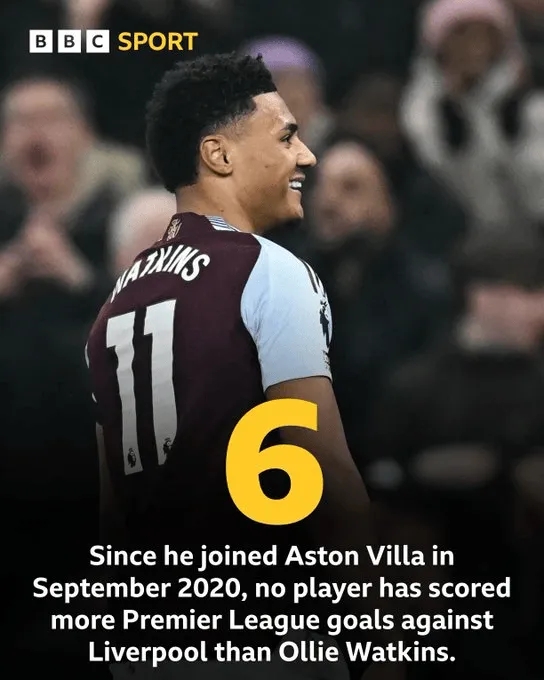 據(jù)BBC的數(shù)據(jù)統(tǒng)計,自2020年9月加盟維拉以來,沃特金斯在英超聯(lián)賽對陣?yán)锲忠呀?jīng)打進(jìn)6球,同期沒有球員在英超對陣?yán)锲直人M(jìn)球更多。