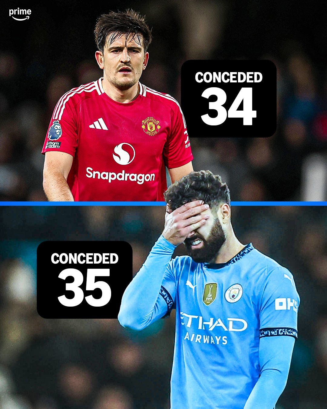 意想不到?曼城24輪英超丟35球,丟球數(shù)已經(jīng)超過曼聯(lián)的34球