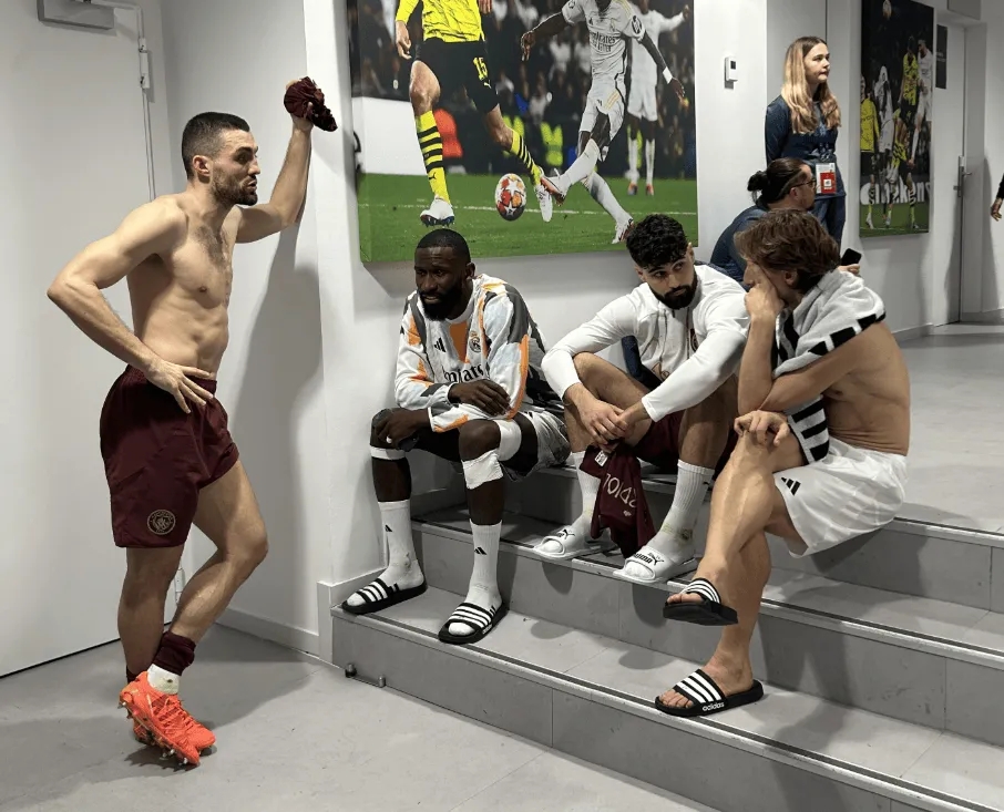 老友重逢!魔笛、呂迪格、科娃、格瓦賽后在球員通道敘舊