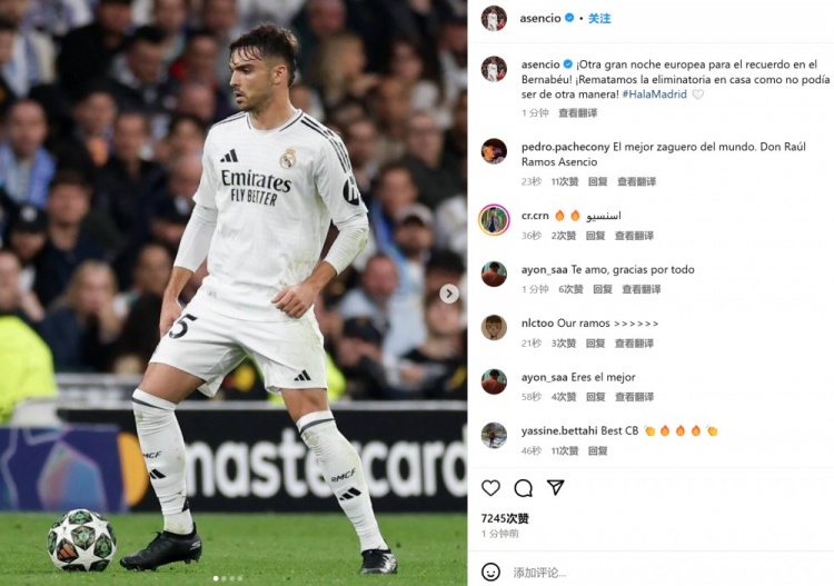 他也在賽后通過社媒曬出自己的比賽照,并配文:“在伯納烏球場的又一個(gè)值得銘記的歐冠之夜!我們?cè)谥鲌龀晒母郊淤愅粐酥庖矂e無其他可能!馬德里前進(jìn)!”