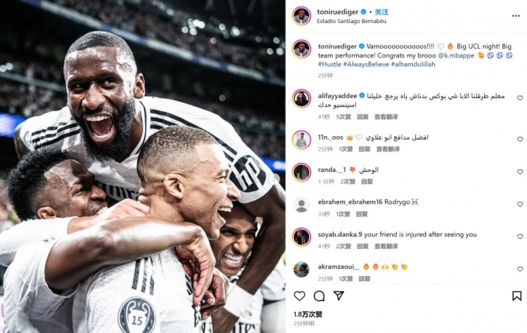 他也在賽后通過(guò)社媒曬出自己和隊(duì)友們相擁慶祝的合照,并配文:“太棒了?。?!重要的歐冠勝利,出色的團(tuán)隊(duì)表現(xiàn)!”