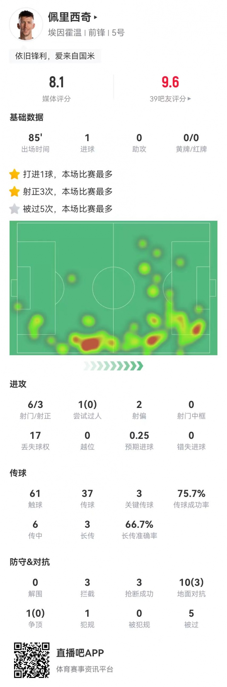 2月20日訊 埃因霍溫在本輪歐冠3-1擊敗尤文,國米舊將佩里西奇本場數(shù)據(jù)如下: