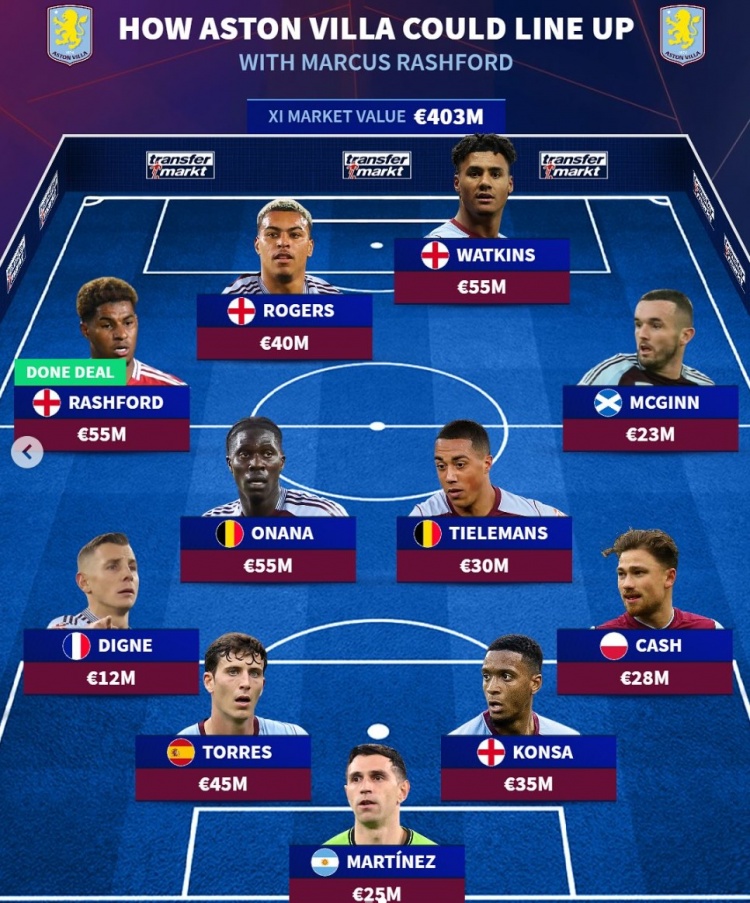 2月3日訊 2月3日訊 曼聯(lián)邊鋒拉什福德已經(jīng)官宣外租維拉,《轉會市場》也預測了維拉的潛在主力陣容。