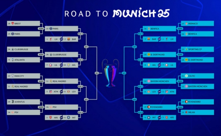 2024/25賽季歐冠16強(qiáng)淘汰賽對陣抽簽將于北京時間今天晚上19:00進(jìn)行,抽簽地點位于瑞士尼翁。