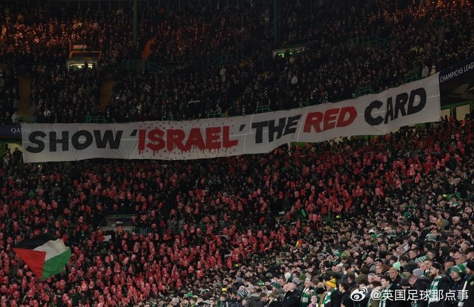 此前凱爾特人1比2不敵拜仁的歐冠比賽中,凱爾特人球迷拉起條幅:“向以色列出示紅牌” (圖3)