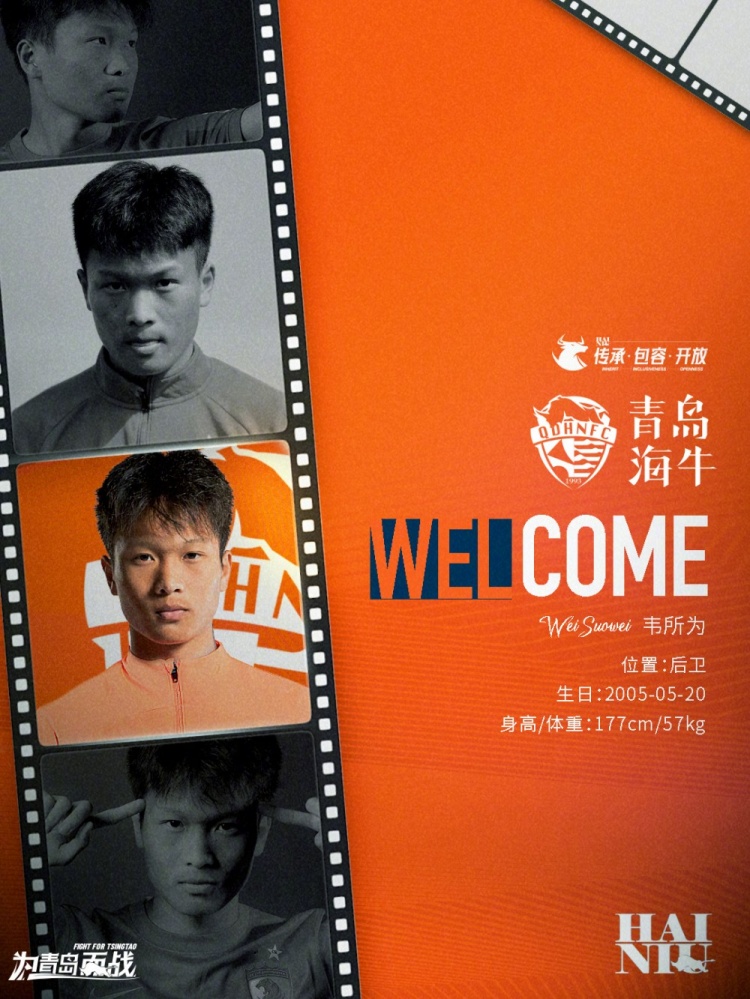 雖然還很年輕,但韋所為未來光明,期待小將在場上能夠敢打敢拼,在青島海牛真正有所為!新賽季,我們一起為青島而戰(zhàn)!