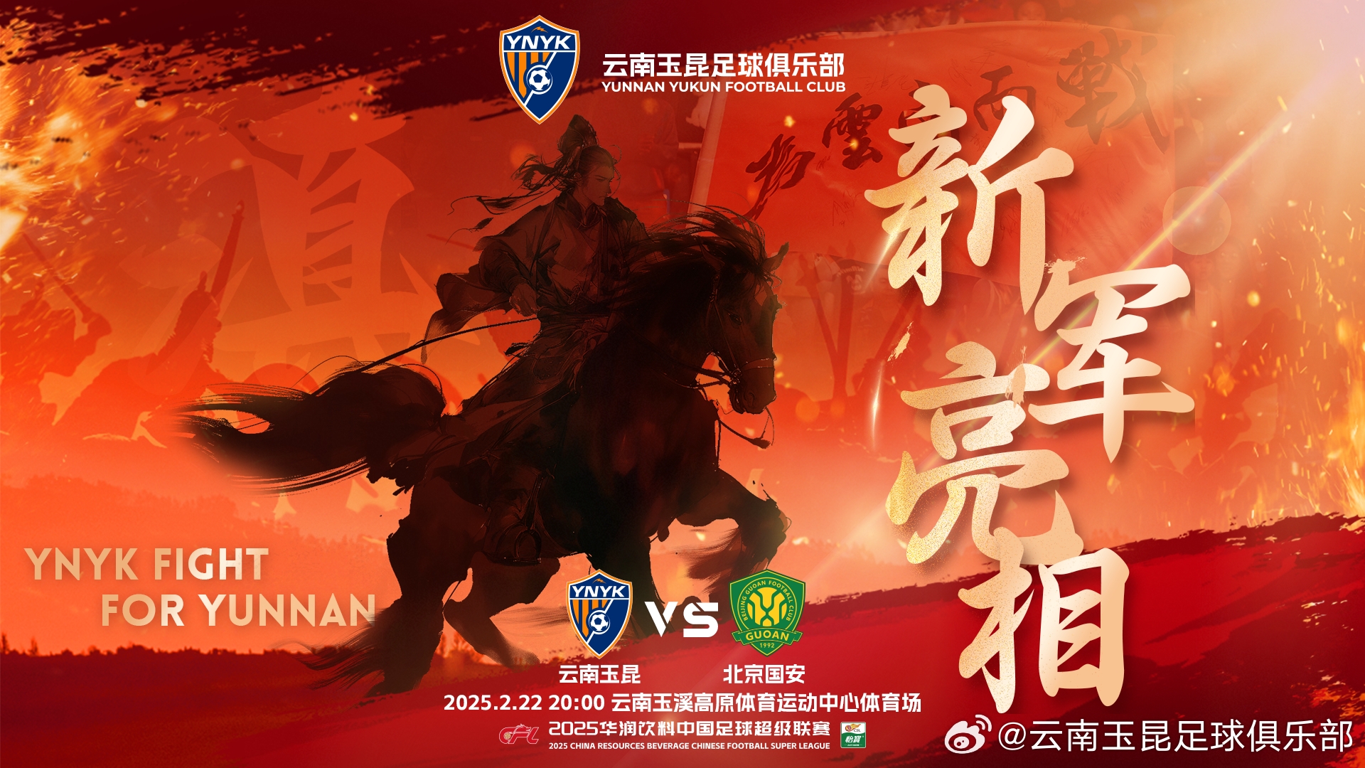 云南玉昆上賽季獲得中甲冠軍,本賽季升入中超;北京國安上賽季獲得中超第4。