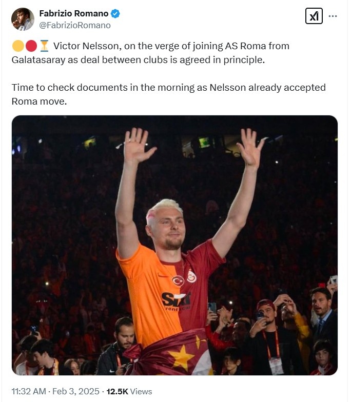 2月3日訊 羅馬諾報(bào)道,維克托-尼爾森即將從加拉塔薩雷加盟羅馬,雙方俱樂部的交易已經(jīng)達(dá)成了原則性協(xié)議。