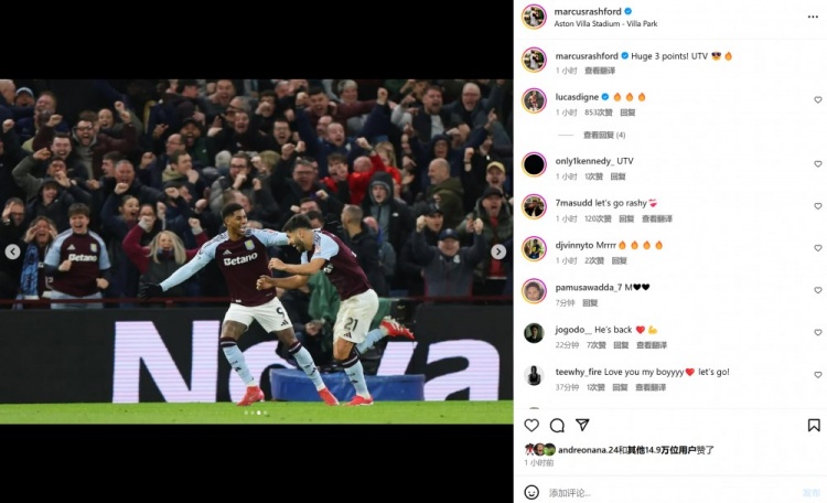 2月23日訊 在本輪英超,維拉2-1擊敗切爾西。本場(chǎng)比賽拉什福德送出兩次助攻,賽后他也在社媒曬出與阿森西奧慶祝合影,配文寫道:“拿下重要的三分!” 標(biāo)簽: 足球 英超 阿斯頓維拉