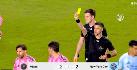 賽后梅西找裁判抱怨不滿判罰,裁判向梅西出示黃牌。
