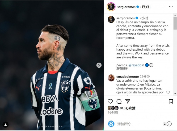 拉莫斯社媒曬出自己的照片,并寫道:“在一段時(shí)間沒有踏上球場之后,我為自己的首秀以及球隊(duì)的勝利感到高興和激動(dòng),努力和堅(jiān)持總會得到回報(bào)?!?/p>