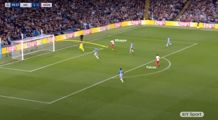 法爾考縱深跑位,為姆巴佩創(chuàng)造出了進(jìn)攻空間,并最終破門(mén)得分。
