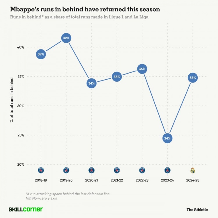 姆巴佩本賽季又開(kāi)始頻繁地進(jìn)行身后跑位了