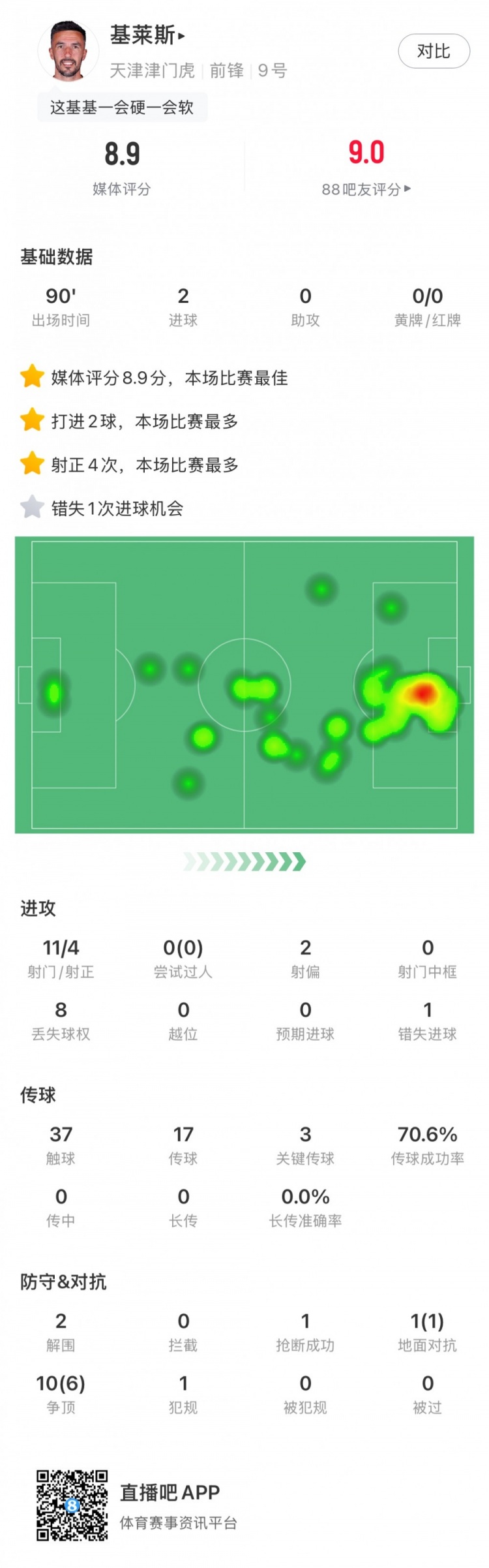 2月23日訊 今天下午進行的新賽季中超首輪比賽,主場作戰(zhàn)的津門虎,在兩球落后的不利形勢下,依靠基萊斯在比賽最后時刻的兩個進球,2-2艱難戰(zhàn)平梅州客家。梅開二度的基萊斯也成為了本場比賽表現(xiàn)最為搶眼的球員。