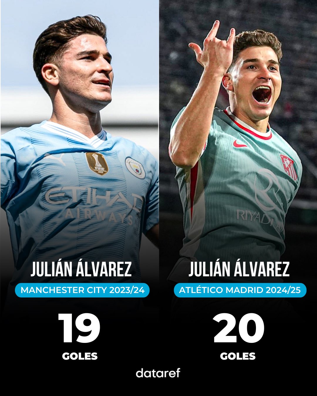 24/25賽季(馬競):小蜘蛛出場39次,20球5助,出場2562分鐘23/24賽季(曼城):小蜘蛛出場54次,19球13助,出場3481分鐘22/23賽季(曼城):小蜘蛛出場49次,17球4助,主場2526分鐘 標簽: 足球 英超 曼城 西甲 馬德里競技