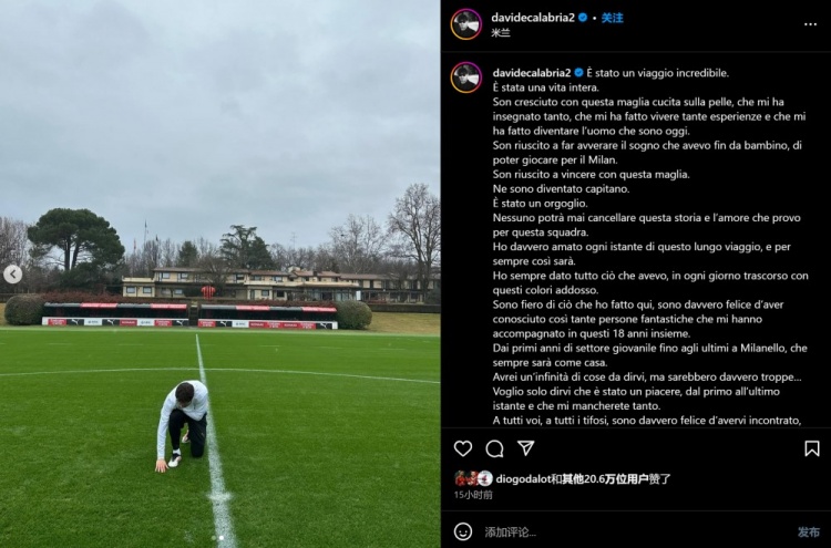 “從我在青訓(xùn)隊(duì)的第一年到我在米蘭內(nèi)洛的最后一年,這里對(duì)我來(lái)說(shuō)永遠(yuǎn)都像家一樣。我有說(shuō)不盡的心聲想告訴你們,但千言萬(wàn)語(yǔ)讓我無(wú)法說(shuō)出口......我只想告訴你們,從第一刻到最后一刻,我都倍感榮幸,我也會(huì)非常想念你們?!?/span>