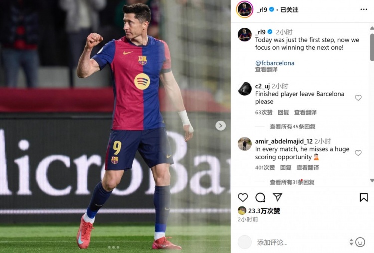 本場(chǎng)比賽萊萬(wàn)替補(bǔ)登場(chǎng)打進(jìn)一球,賽后他也在個(gè)人社媒曬出本場(chǎng)慶祝進(jìn)球照片,配文寫道:“今天的比賽只是第一回合,現(xiàn)在我們專注于贏下下一回合!”