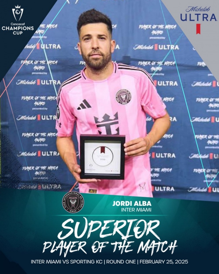 2月26日訊 中北美聯(lián)冠軍杯,邁阿密國際3-1堪薩斯城。賽后,本場比賽送出1次助攻的阿爾巴當(dāng)選全場最佳球員。
