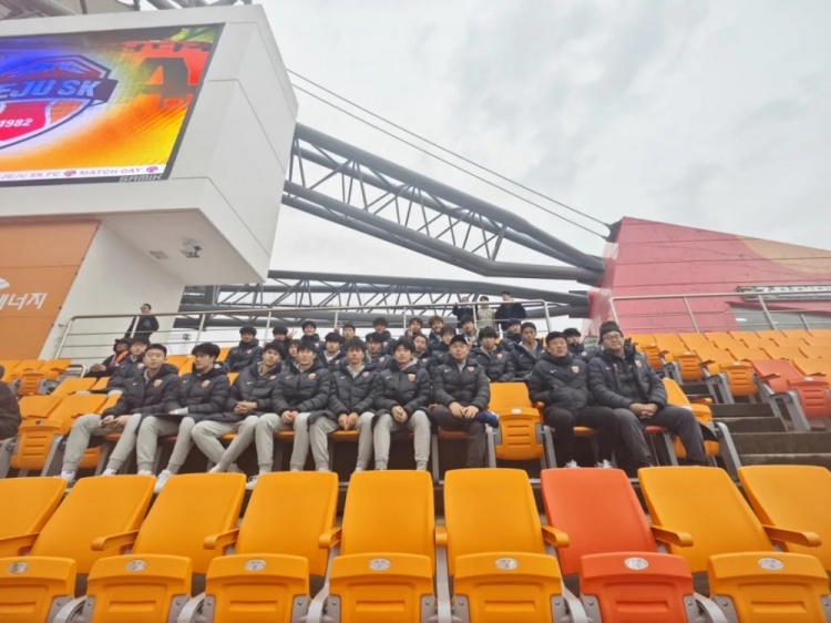 此外,為了讓隊員們更好地了解當(dāng)?shù)氐淖闱蛭幕沧鳛榕τ?xùn)練之余的調(diào)劑,教練組還在冬訓(xùn)期間組織全隊觀看了K聯(lián)賽濟州SK對陣首爾的比賽,希望隊員能夠在觀賽的過程中有所收獲。